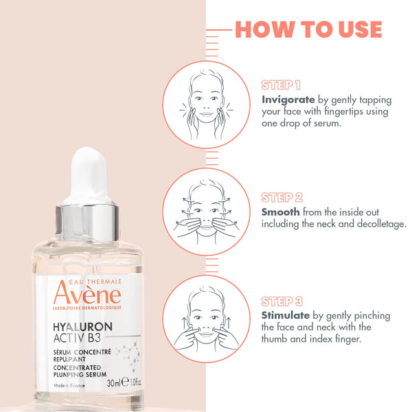 Avene Hyaluron Activ B3 Concentrated Plumping Serum 30 ML: is a smoothing, firming, regenerating serum that acts on the cause of aging. After 15 days of use the skin is plumped, firmer, and more elastic: true efficiency in its purest form.