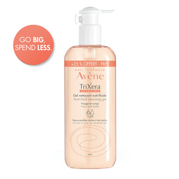 TriXera NUTRITION Nutri-fluid cleansing gel is particularly indicated for dry to very dry skin in the whole family.