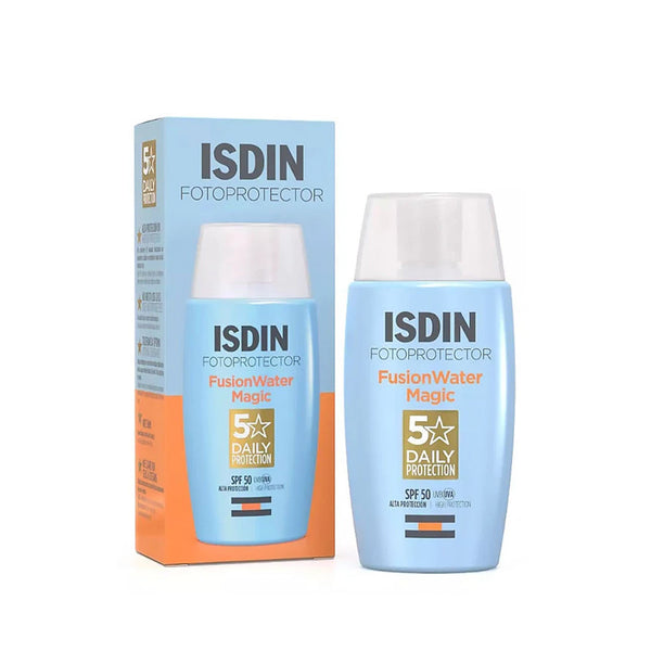 ISDIN Fotoprotector Fusion Water SPF50+-50ML is a facial sunscreen ideal for daily use and outdoor activities. Besides protecting from solar radiation it keeps the skin hydrated, does not sting the eyes, leaves no white cast and can be applied on wet skin.
