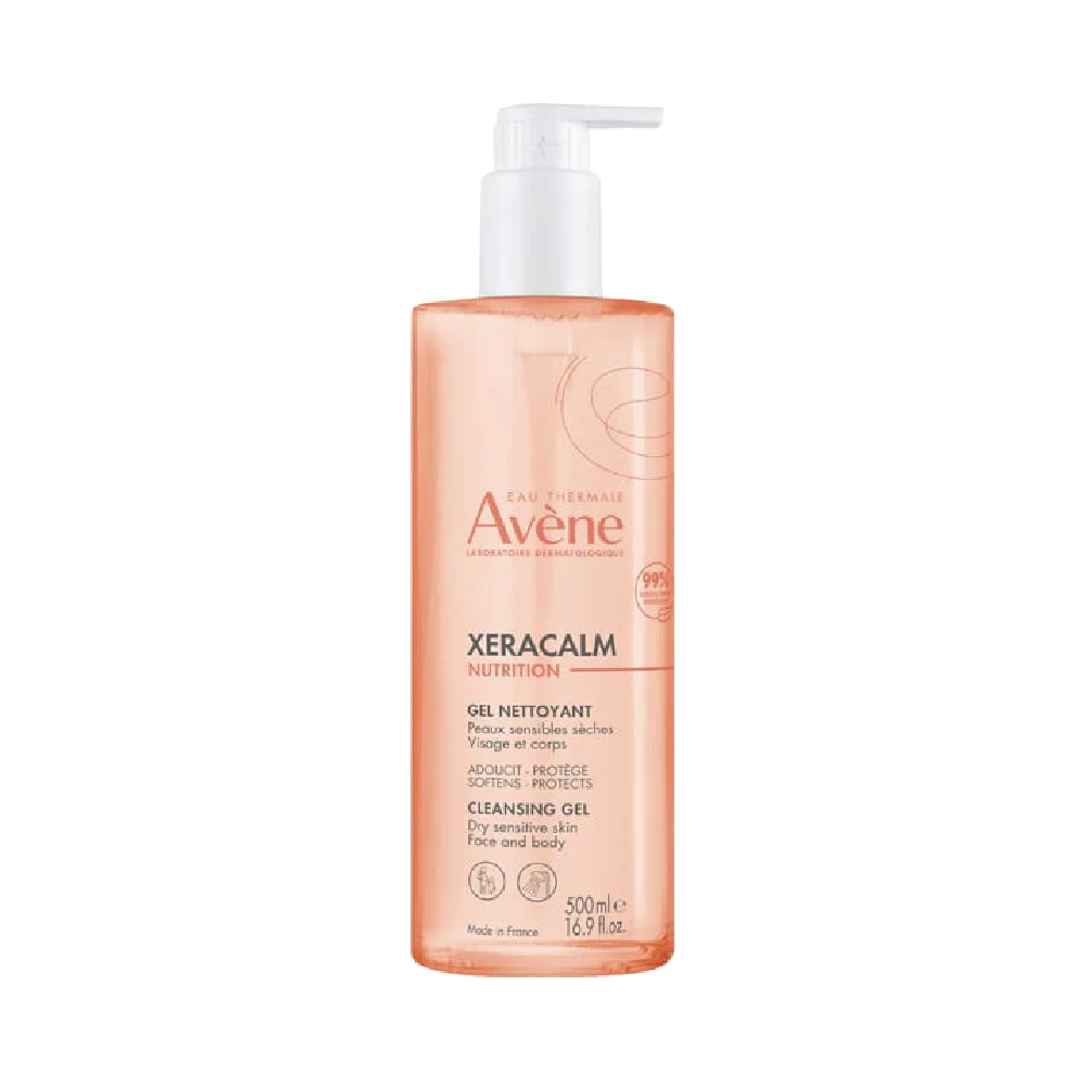 Avene Xeracalm Nutrition Cleansing Gel 500 ML: cleanses and provides skin comfort. Formulated with 99% ingredients of natural origin, this face and body cleansing gel respects the most sensitive skin. Its soap-free gel texture with neutral pH for the skin foams upon application, and does not sting the eyes or external intimate areas. It benefits from an eco-responsible approach.