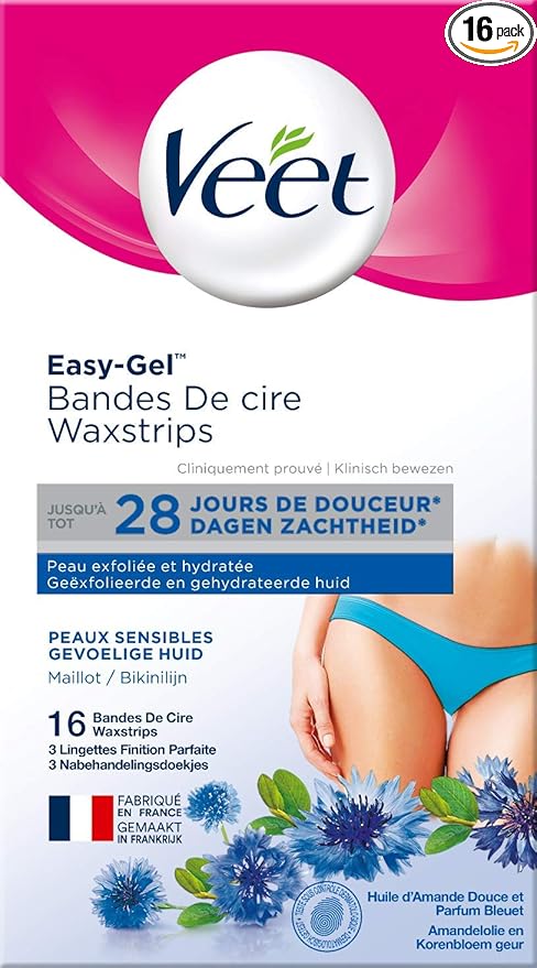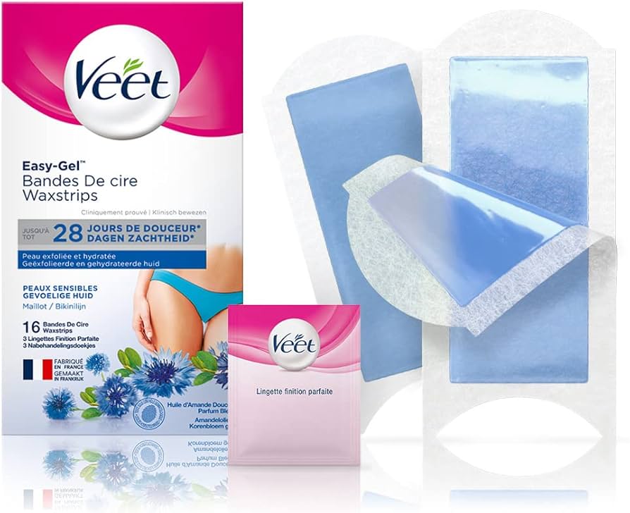 Veet® Bikini and Underarm Wax Strips with Vitamin E and Almond Oil for sensitive skin 16 strips, 4 wipes