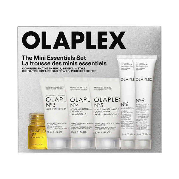 This mini healthy hair value set delivers major results for all hair types. The perfect starter set or packable routine. Experience iconic Nº.3 to repair and strengthen, our #1 shampoo and conditioner, and finish with stylers that boost shine, control frizz, and protect from heat and breakage, including bestselling OLAPLEX Nº.7.