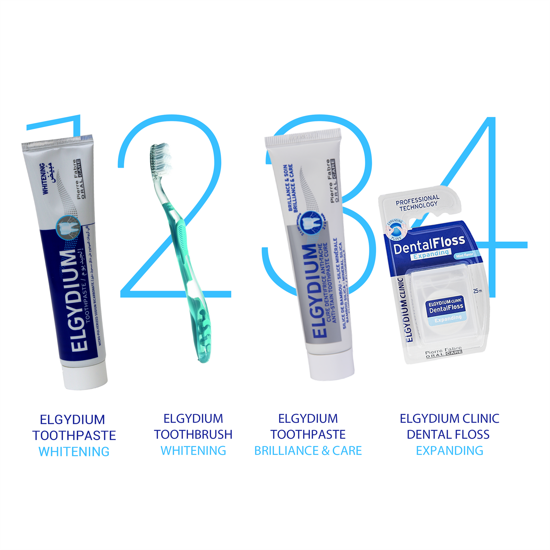 Brush with the toothpaste for two to three minutes, two to three times a day, after every meal, using a suitable brush, such as the ELGYDIUM Whitening brush with the Microball System.