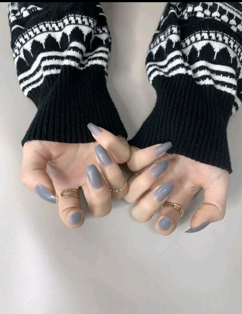 - Fake nails Light gray full cover false nail for women and girls 1pc Nail File & 1sheet Tape