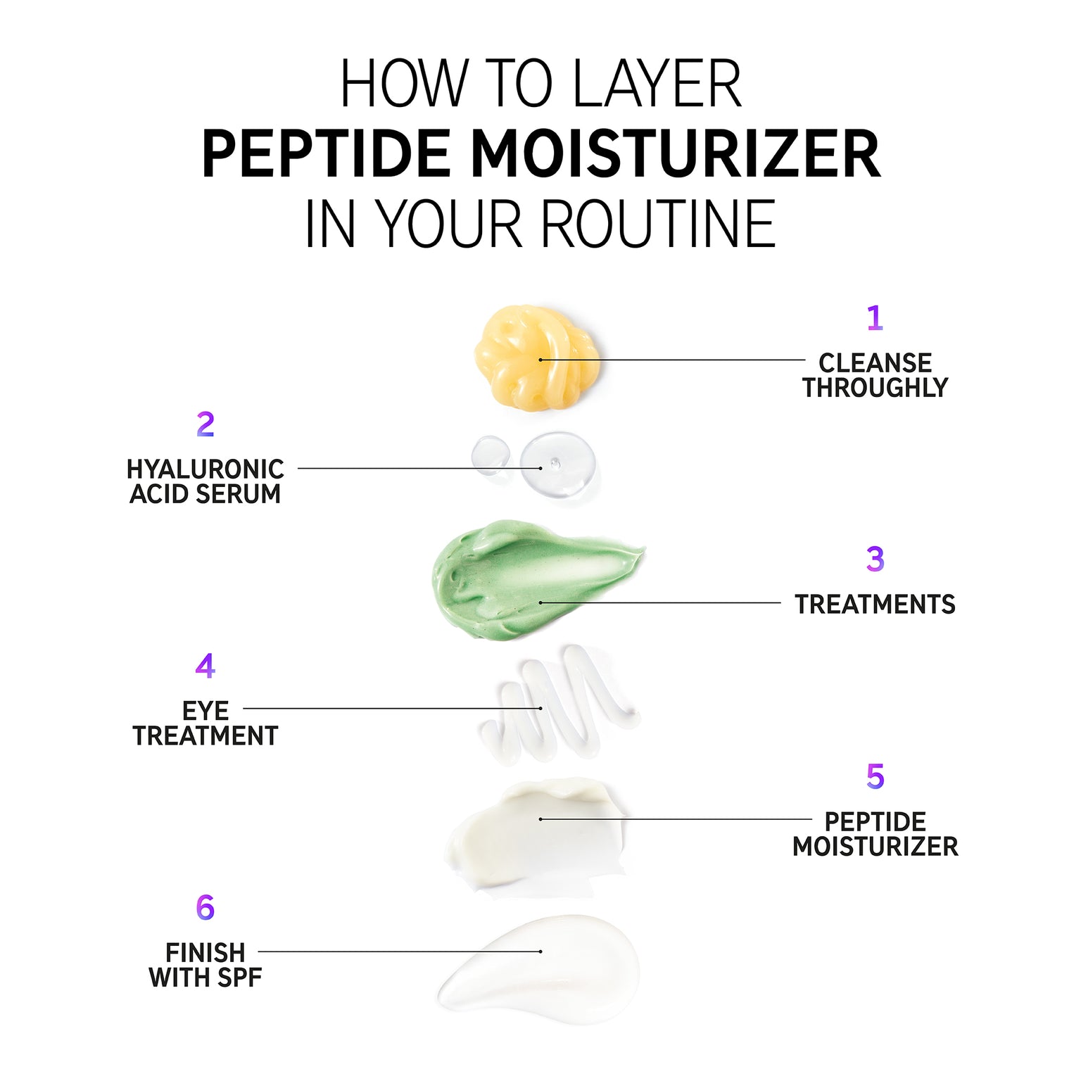 A nurturing yet fast-absorbing daily face moisturizer for dry skin. Its dual peptide formula aims to reduce the appearance of fine line & wrinkles and balance skin's natural oil levels. With continued use, Peptide Moisturizer helps to support natural collagen and hydrate skin, leaving skin looking youthful.