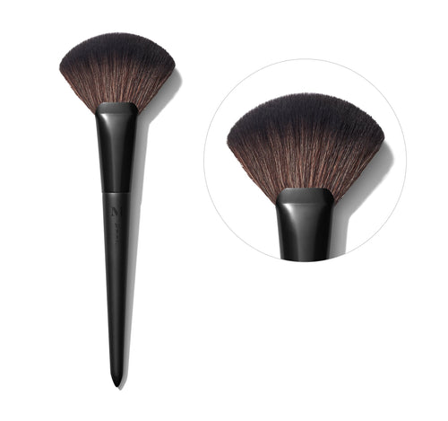 The classic fan brush—reimagined for next-level highlighter application. Extra-wide at the top, this fluffy brush hits the high points of the face in a single sweep. It can also be used for tinted moisturizer, bronzer, blush, and setting powder, as well as for perfecting chiseled effects.