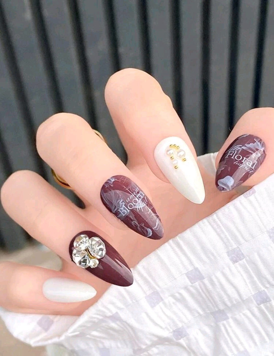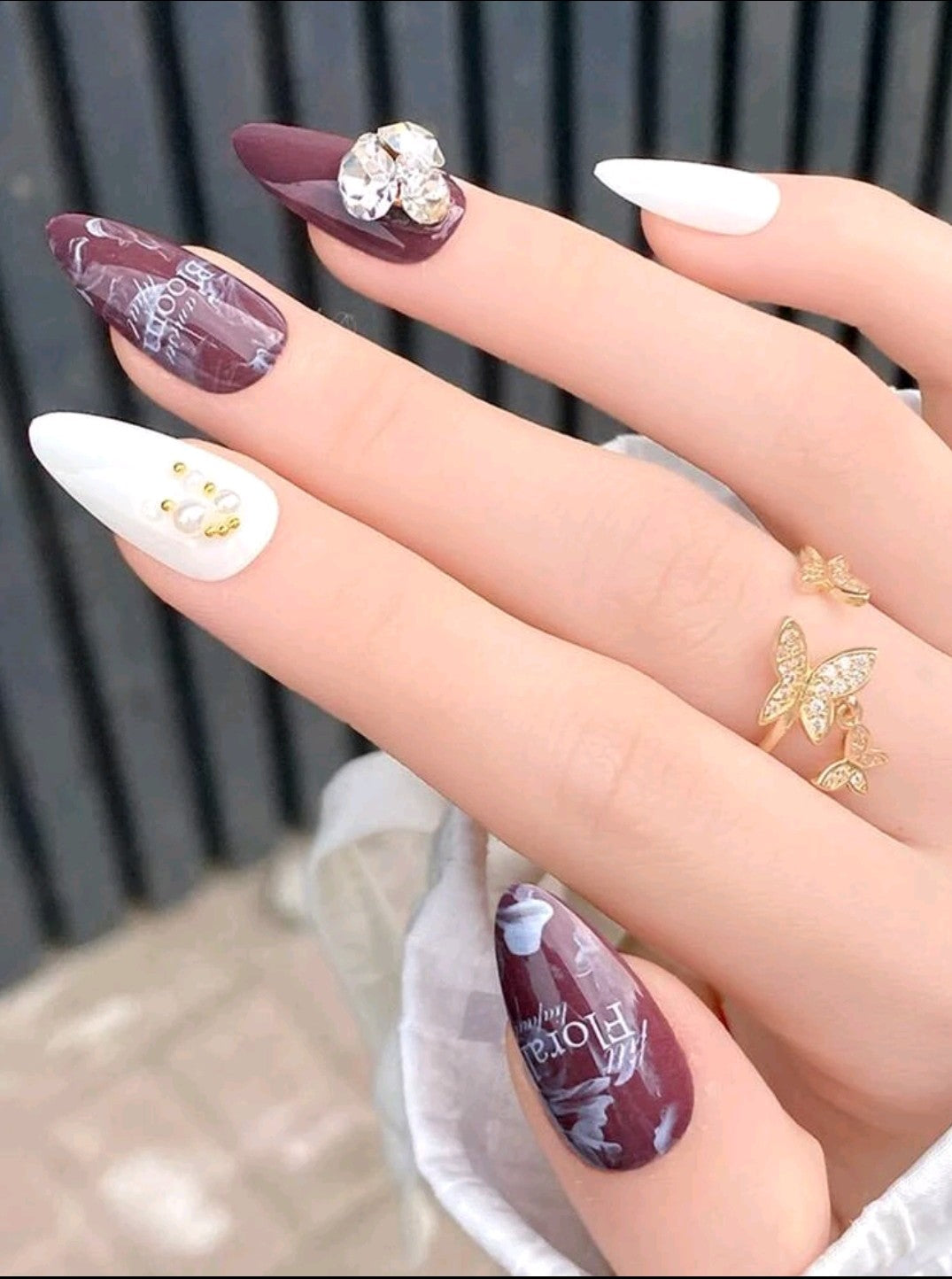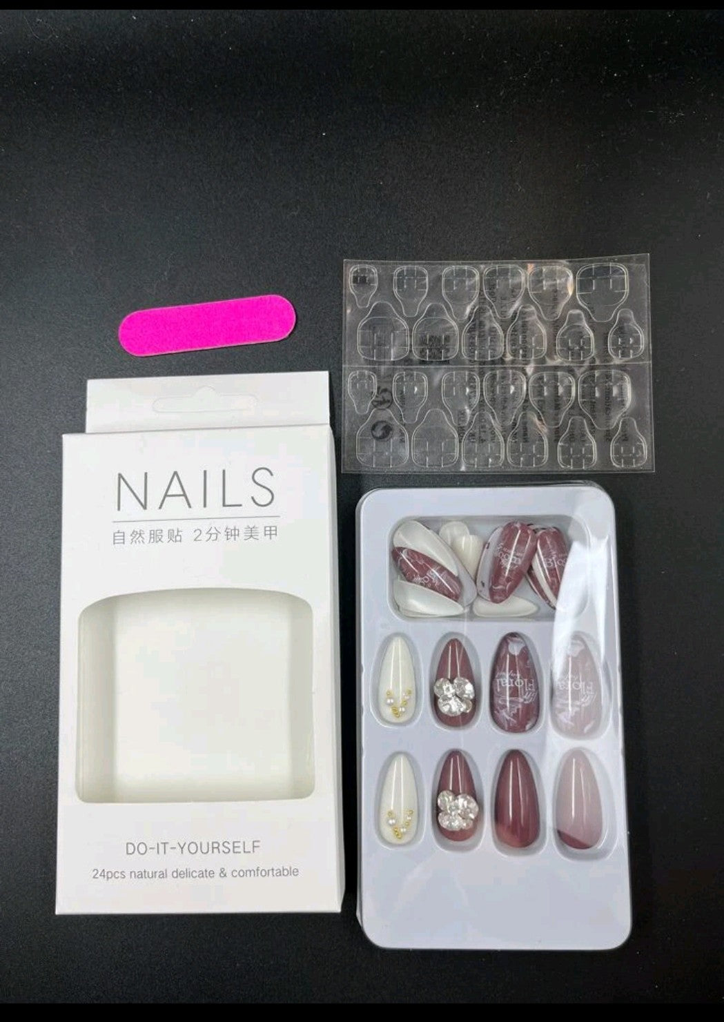 Fake Nails 24pcs Long Almond Letter Graphic Fake Nail & 1pc Nail File & 1sheet Tape