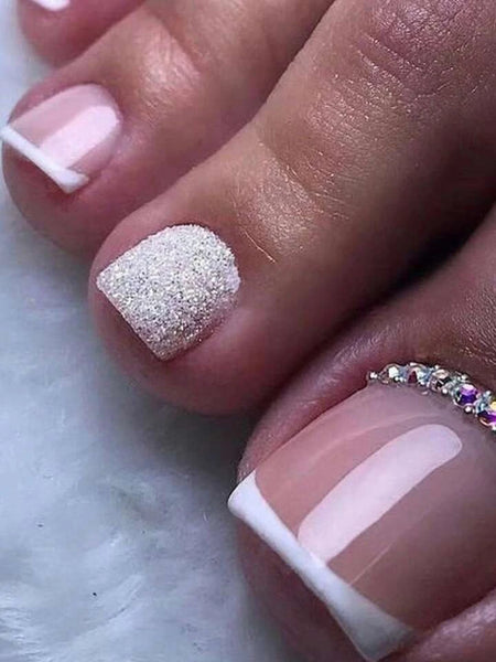 - Fake nails 24pcs Short Square Black French Glitter Fake Toenail & 1pc Toenail File & 1sheet Tape