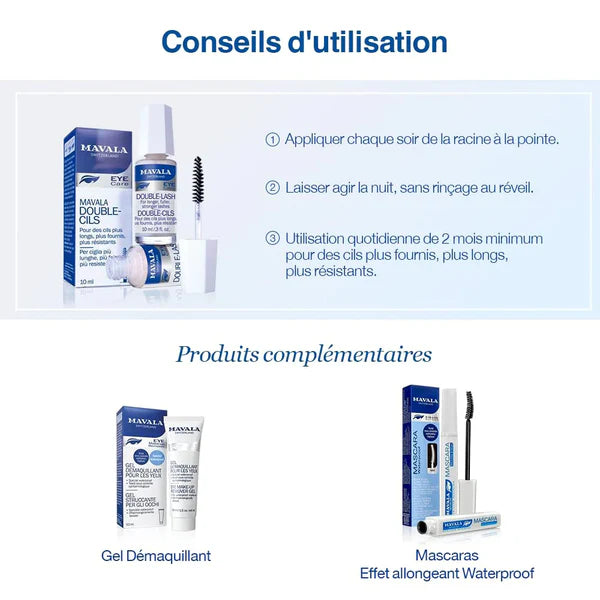 Double-Lash contains a natural extract rich in vitamins and proteins that strengthens, covers and protects the lashes which will then become longer and stronger. This care helps lengthen and densify lashes, which will be more fuller and silkier.