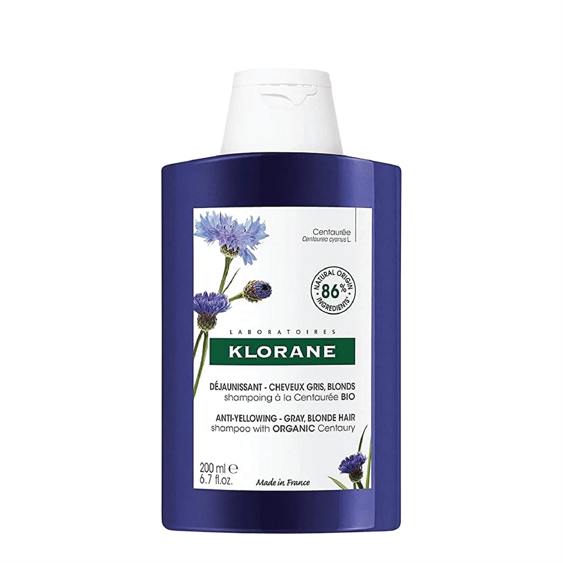 Klorane Anti-Yellowing Shampoo with Centaury – 200 ML: nourishes and softens the hair while neutralizing unwanted yellow, brassy and copper tones in blonde, platinum, silver, gray or white hair.