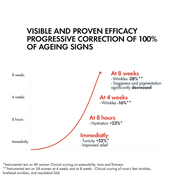 Proven and visible efficacy on wrinkles, sagginess, tonicity, pigmentation