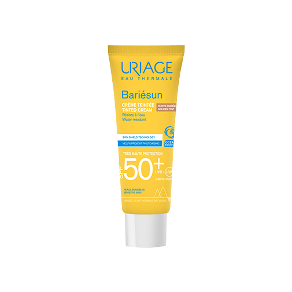 Uriage Bariesun Tinted Cream Spf 50+ - 50 ML this tinted cream provides very high protection against UVA/UVB and prevents the skin from drying out. Its melt-in and non-greasy formula naturally evens out the complexion and enhances the skin with an instant healthy glow. New generation dry touch texture: immediate absorption and anti-shine effect, guaranteed.