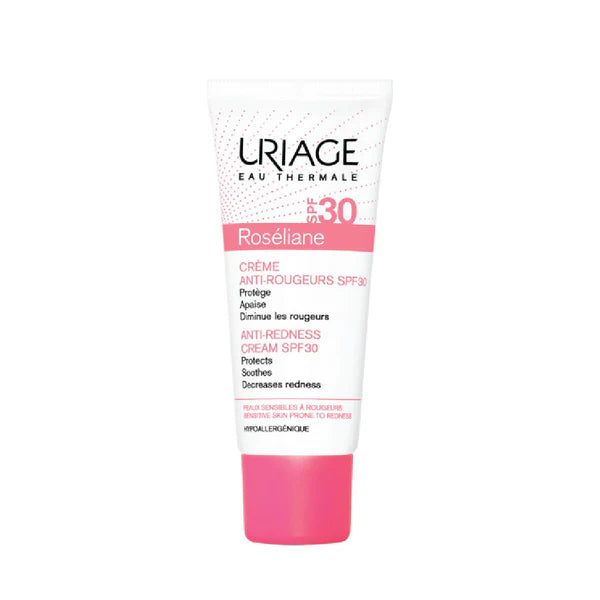 Uriage roséliane - anti-redness cream spf30 soothes sensations of heat and tightness, decreases redness and provides high anti-uva/uvb protection to prevent redness. It provides instant comfort and leaves the skin soft, soothed and protected.