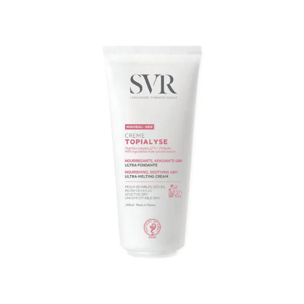 Svr topialyse moisturizing skin cream is a rich, soothing cream designed for dry, sensitive, and atopic skin. It provides intense hydration and helps to restore the skin's natural protective barrier. Formulated with a combination of essential lipids and emollients, this cream deeply nourishes the skin, alleviating feelings of tightness and discomfort. It is ideal for use on the body and face, offering long-lasting moisturization. The non-greasy, fast-absorbing formula is suitable for daily use, leaving the skin soft, smooth, and relieved from irritation.