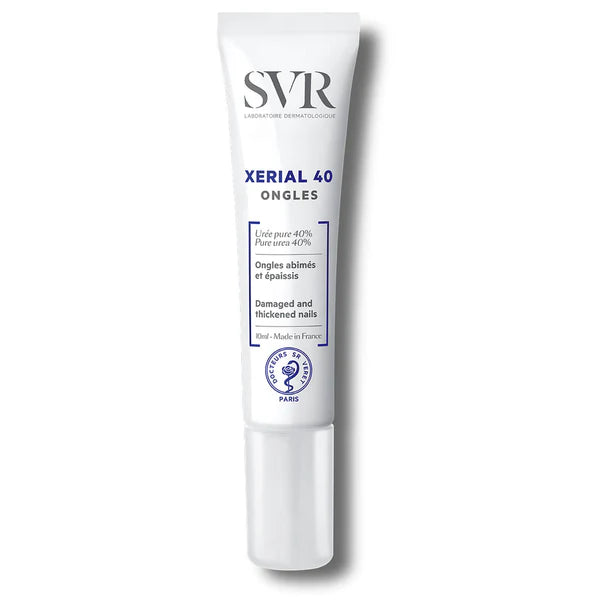 Svr xerial 40 nail gel is a highly effective treatment specifically formulated to treat and prevent the appearance of thickened, dry, and brittle nails. This gel is enriched with 40% urea, which provides intense hydration to the nails and surrounding cuticles. It works by softening hard skin, making it easier to remove rough patches and restore smooth, healthy nails. The formula also helps to restore the nails' natural flexibility and strength, reducing the risk of further damage and promoting healthier, more resilient nails. The gel is fast-absorbing, non-greasy, and can be used daily to maintain nail and cuticle health. It is ideal for individuals with dry, cracked, or damaged nails, as well as those suffering from conditions such as fungal infections or psoriasis.