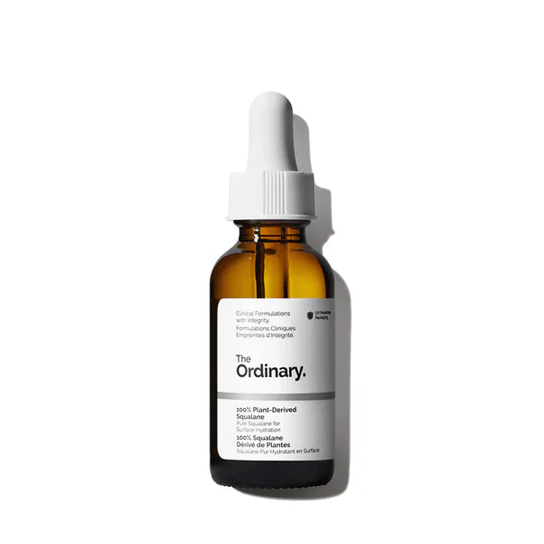 The ordinary 100% plant-derived squalane is a lightweight, pure emollient oil (squalane) which helps to deeply hydrate skin while supporting its natural moisture barrier. The formula is 100% plant‑derived squalane, non‑comedogenic, and suitable for all skin types. It enhances surface‑level hydration, helps prevent moisture loss, and can also be used on hair for added shine and improved softness.