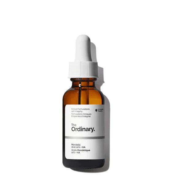 The ordinary mandelic acid 10% + ha is an alpha hydroxy acid serum that helps improve the look of skin clarity by balancing uneven skin tone, and correcting the look and feel of skin texture in a gentle, yet effective manner. This is because it has a larger molecular weight than other alpha hydroxy acids, which results in a slower, more balanced distribution.