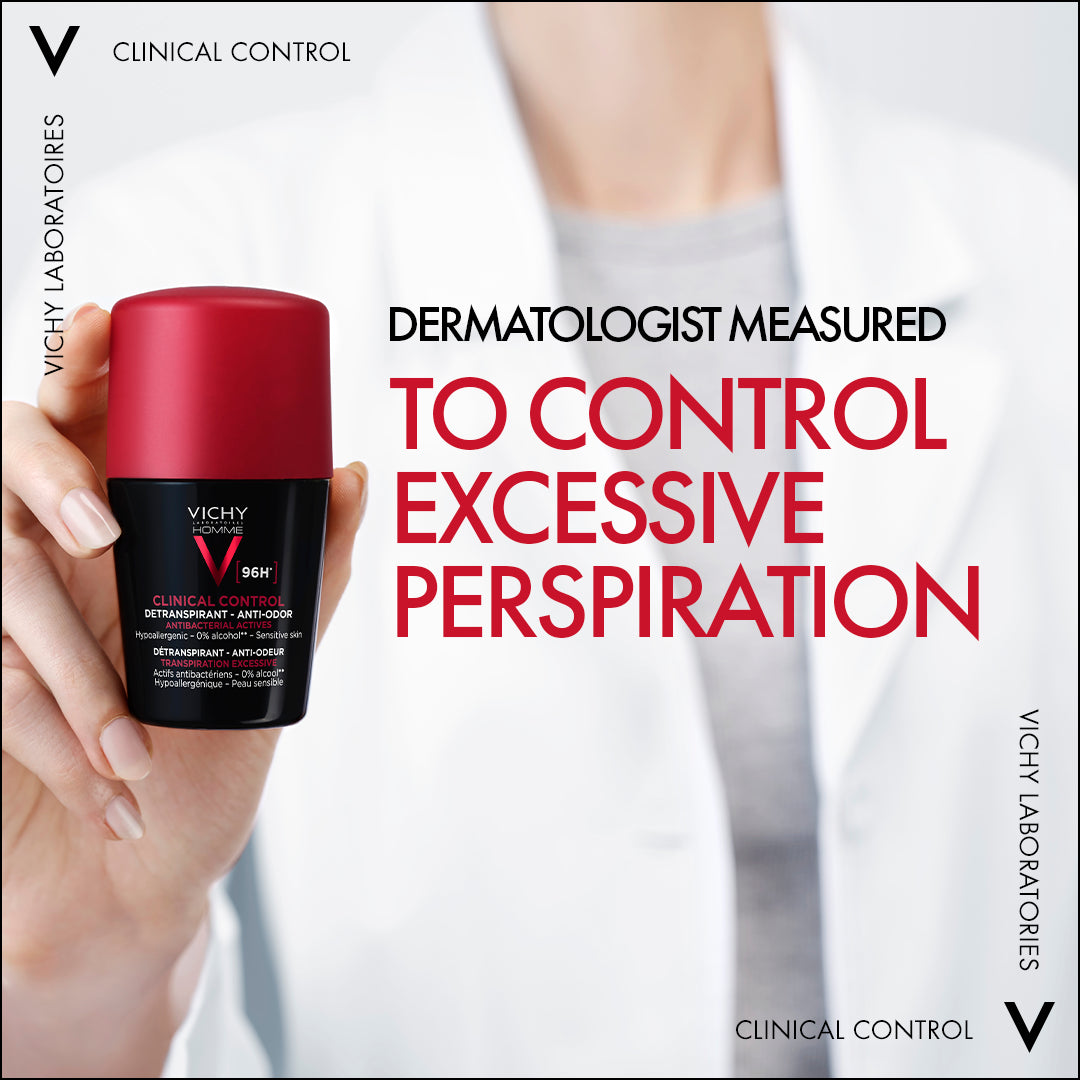 Vichy 96 Hour Clinical Control Deodorant For Men 50 ML: This Vichy roll-on deodorant gives an immediate fresh sensation, regulates excessive perspiration and fights bad odors for up to 96h. For men who want very long-lasting deodorant, anti-perspiration efficacy in all situations. Alcohol-free.