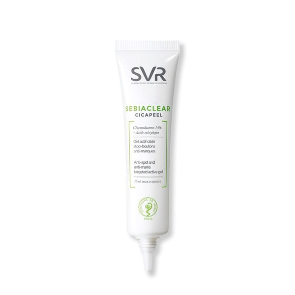 SVR Sebiaclear Cicapeel-15ML is a transparent gel that has a strong action on the prevention and reduction of blemishes. This is a specific product to reduce acne caused lesions in 24 hours. It dries out and eliminates blemishes while preventing the formation of residual marks.